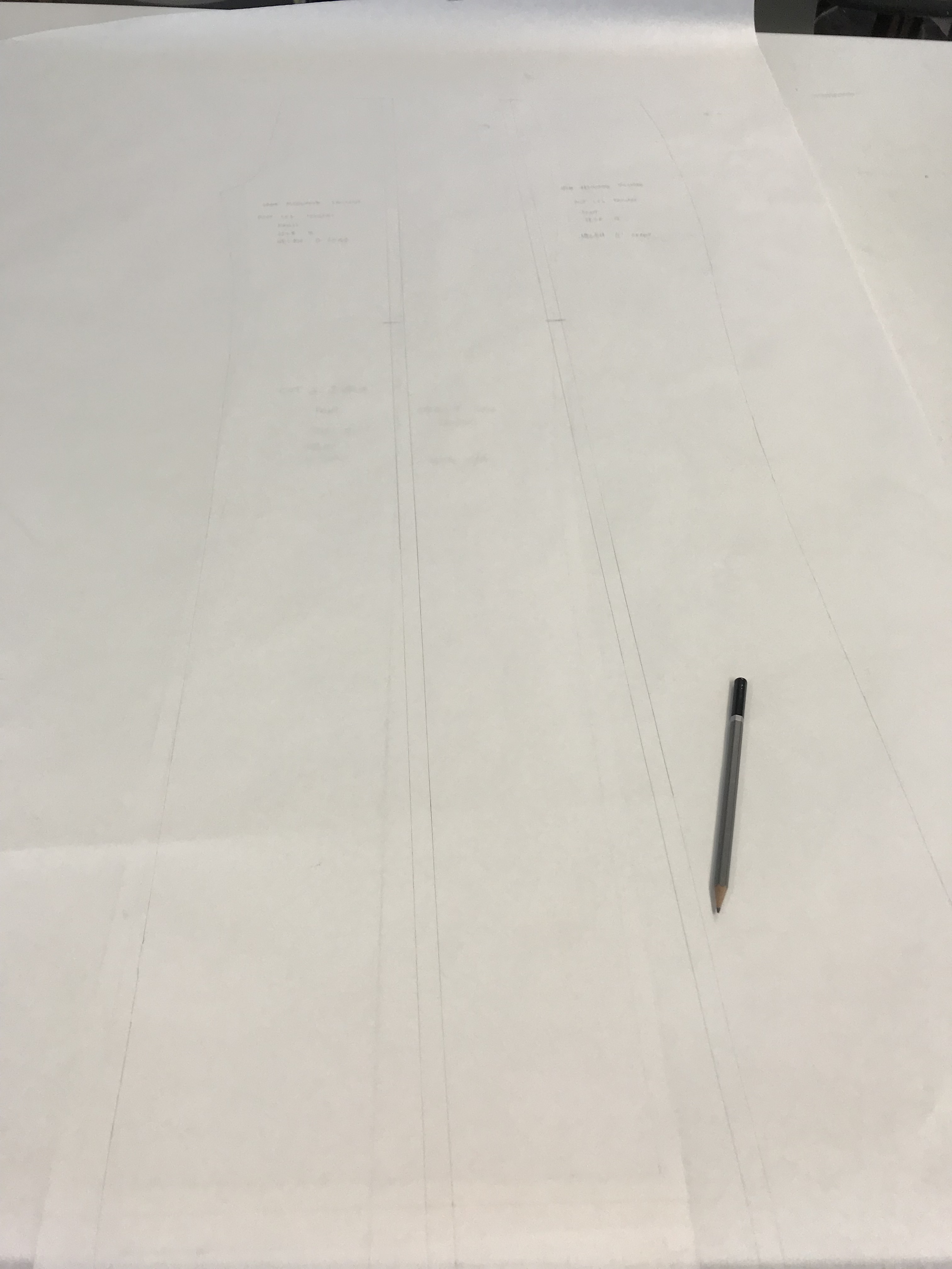 For today my third year needs me to copy her pattern from her master pattern and add a centimeter seam allowance to the original pattern and cut it to toile precisely so it doesn’t change the shape and to be ready to be cut into fabric for the next session.