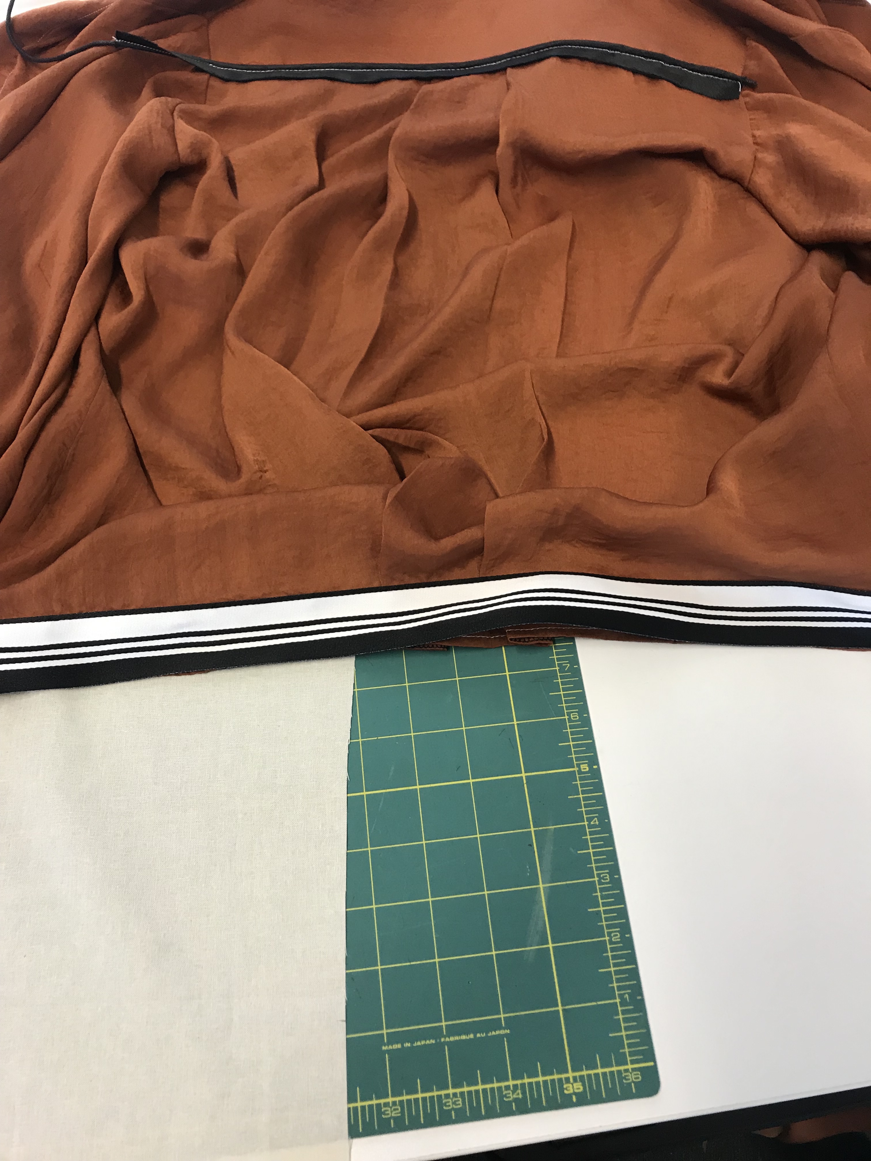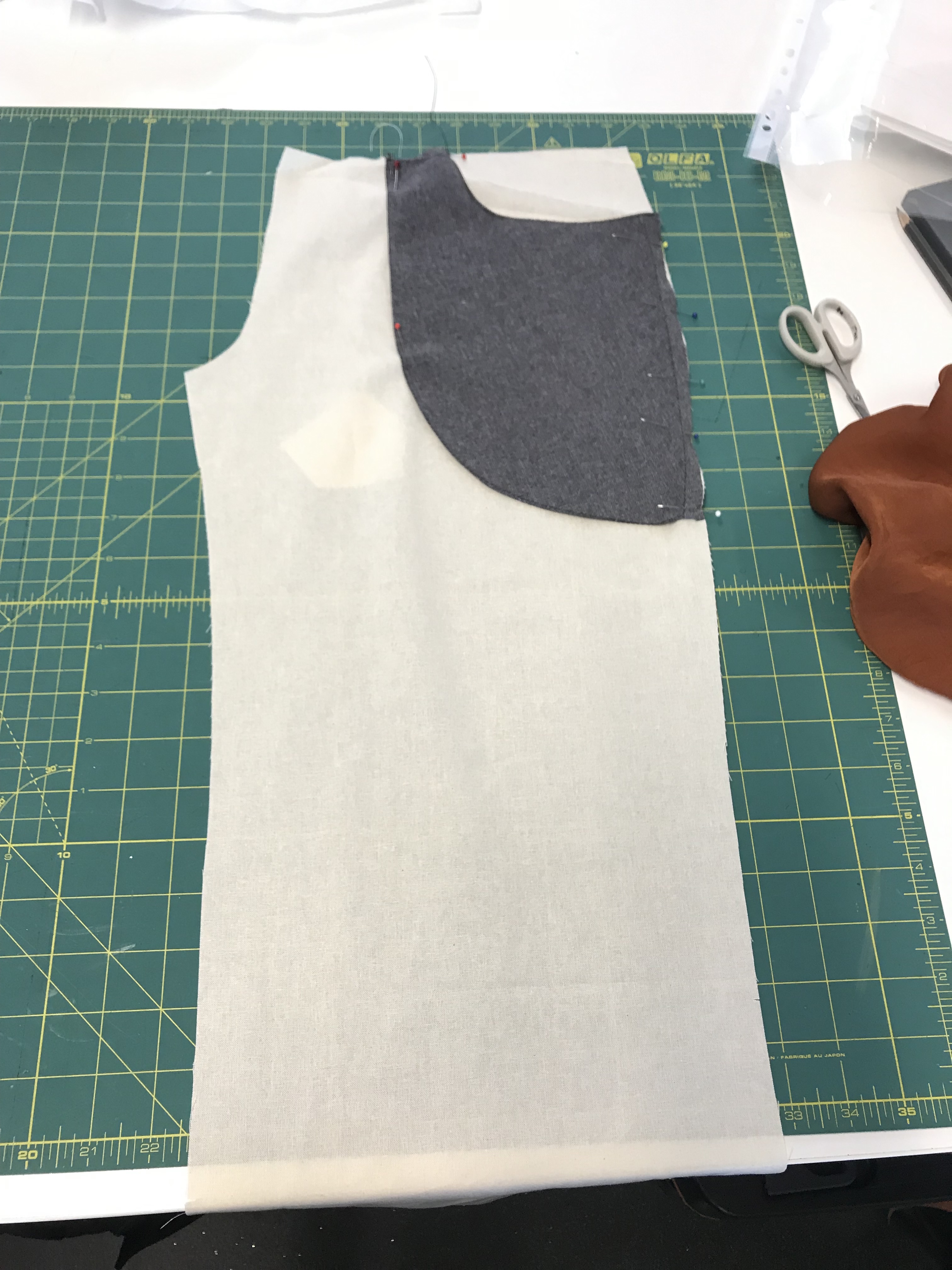 I helped Helen with her actual garment in her actual fabric which is a bit a bit scary as everything needs to be perfect as this will be her final garment not a toile. I cut her pocket pattern on her fabric and created made a pattern on a fold to a whole pattern. This pattern is going to be cut out in leather and it needs to be precise that’s why she doesn’t want to risk cutting it on the fold. I interfaced some of her fabric for the jetted pocket.