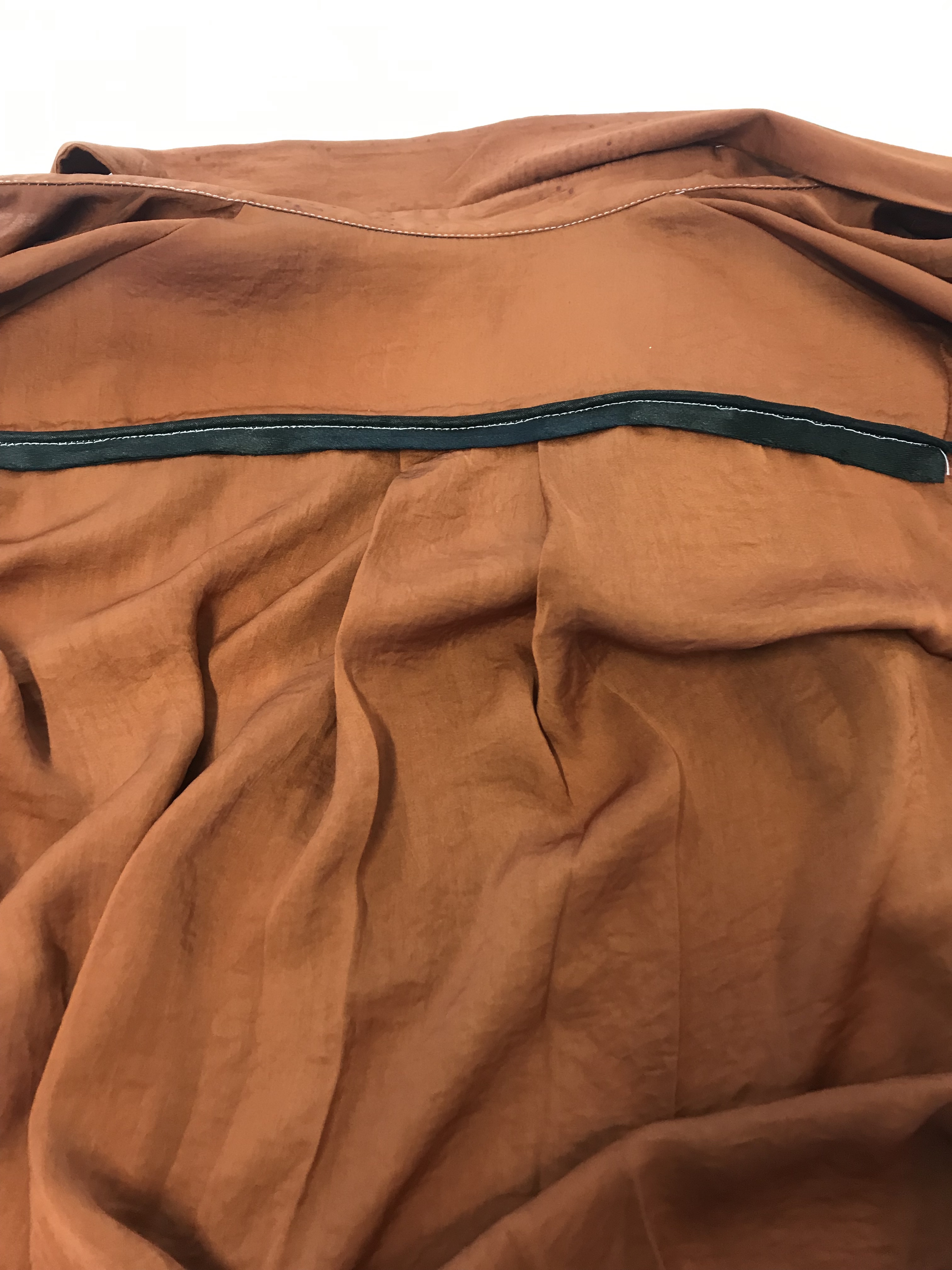 Today we are going back to her camisole from her first look as she noticed that the shape and the drape of her camisole is not what she wants so she decided to add a lining for her camisole and that is my job for today. Making a lining pattern is somewhat easy, however the challenge for me is cutting it all up on her fabric as it is cut on a bias and Helen has a difficult fabric to sew with, which will test my sewing skills.