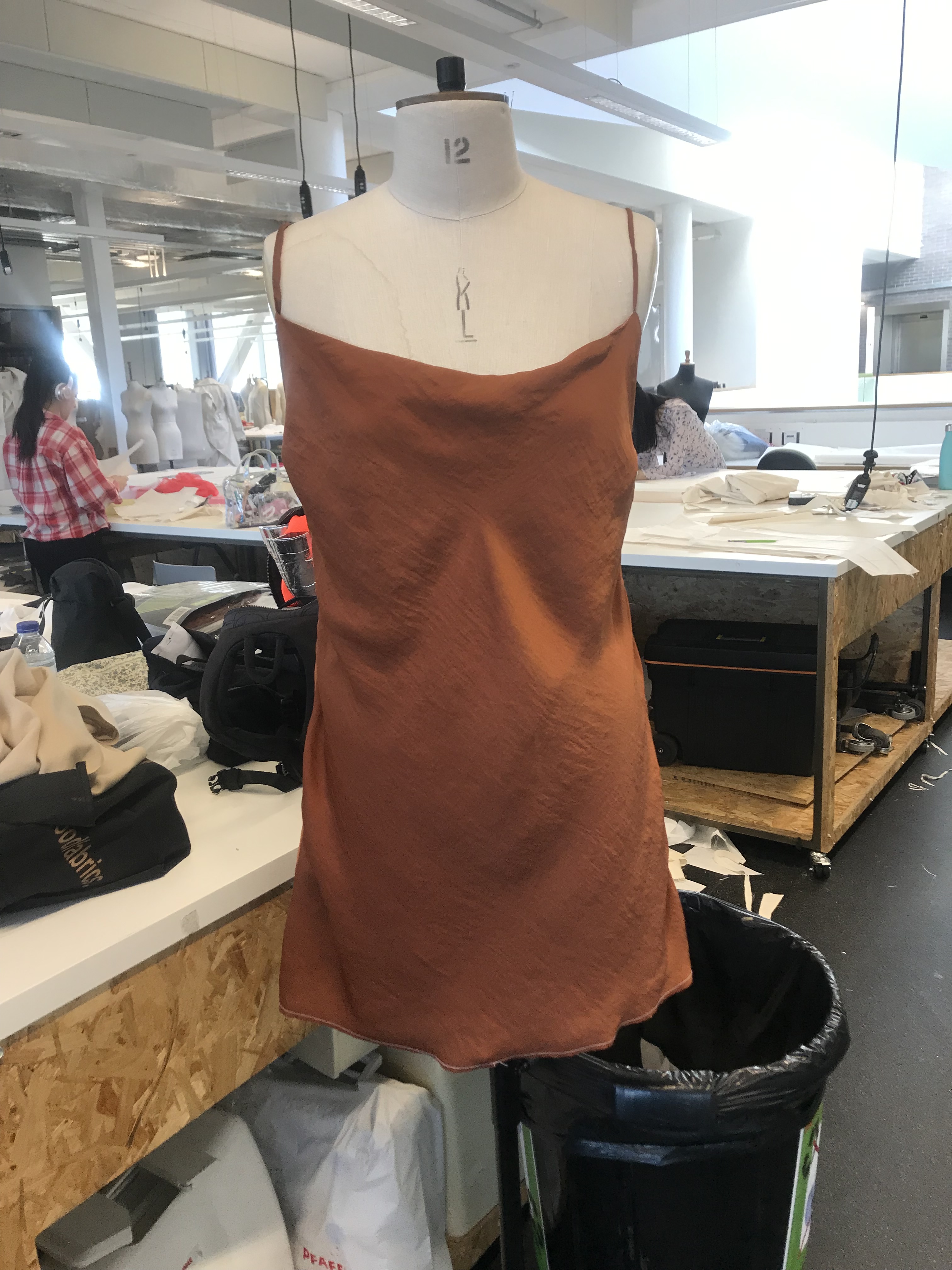 Helen gave me a big task for today, she gave me a pattern for a camisole which I would need to cut on a fabric on the bias and I needed to create a toile from the pattern. For me this is challenging as it’s my thirds year’s work so it needs to be done neatly, and I also learnt that if you’re cutting something on a bias it needs to be stay stitched to stop it from distorting. I really find this exciting as Helen believed that I can do it and she trusted me.